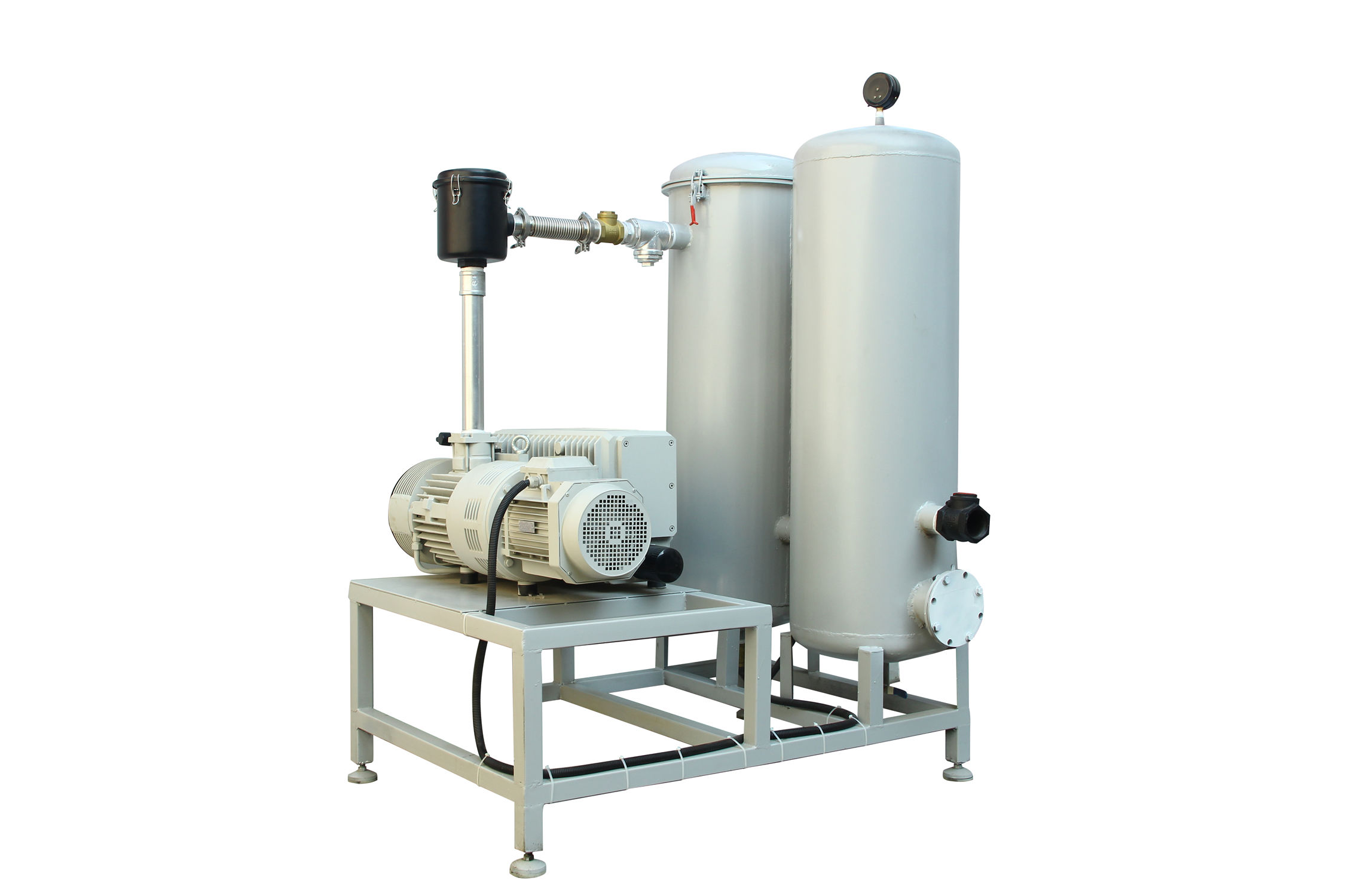 固定式系統(tǒng)一般包括底盤基座、真空泵、真空緩沖罐、控制箱、真空附件(真空閥、真空管道真空過濾器等)、真空度控制系統(tǒng)組成,一般適合抽氣量大,工作條件苛刻等工況例如;3立方真空負(fù)壓站,配置2臺(tái)302立方真空泵,真空過濾器組,在自動(dòng)控制模式下瞬間抽氣速度可達(dá)上干立方每小時(shí)時(shí),遠(yuǎn)大于單泵和雙泵直接抽氣的速度。