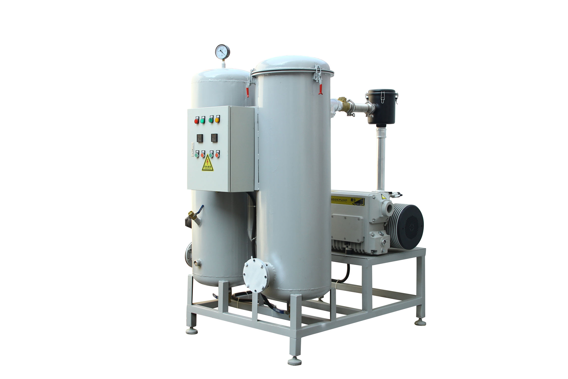 移動(dòng)式真空負(fù)壓站一般包含真空緩沖罐、真空泵、控制制箱、冷卻卻器、真空附件、真空度報(bào)警系統(tǒng);該系列負(fù)壓站包含兩種類型,即開放式真空負(fù)壓站和封閉式真空負(fù)壓站,客戶使用環(huán)境良好,操作簡(jiǎn)單,成本要求嚴(yán)格,則可做開放式真空負(fù)壓站;客戶使用環(huán)境惡劣,有大量粉塵,可凝性氣體,腐蝕性氣體等環(huán)境,則做成封閉式。