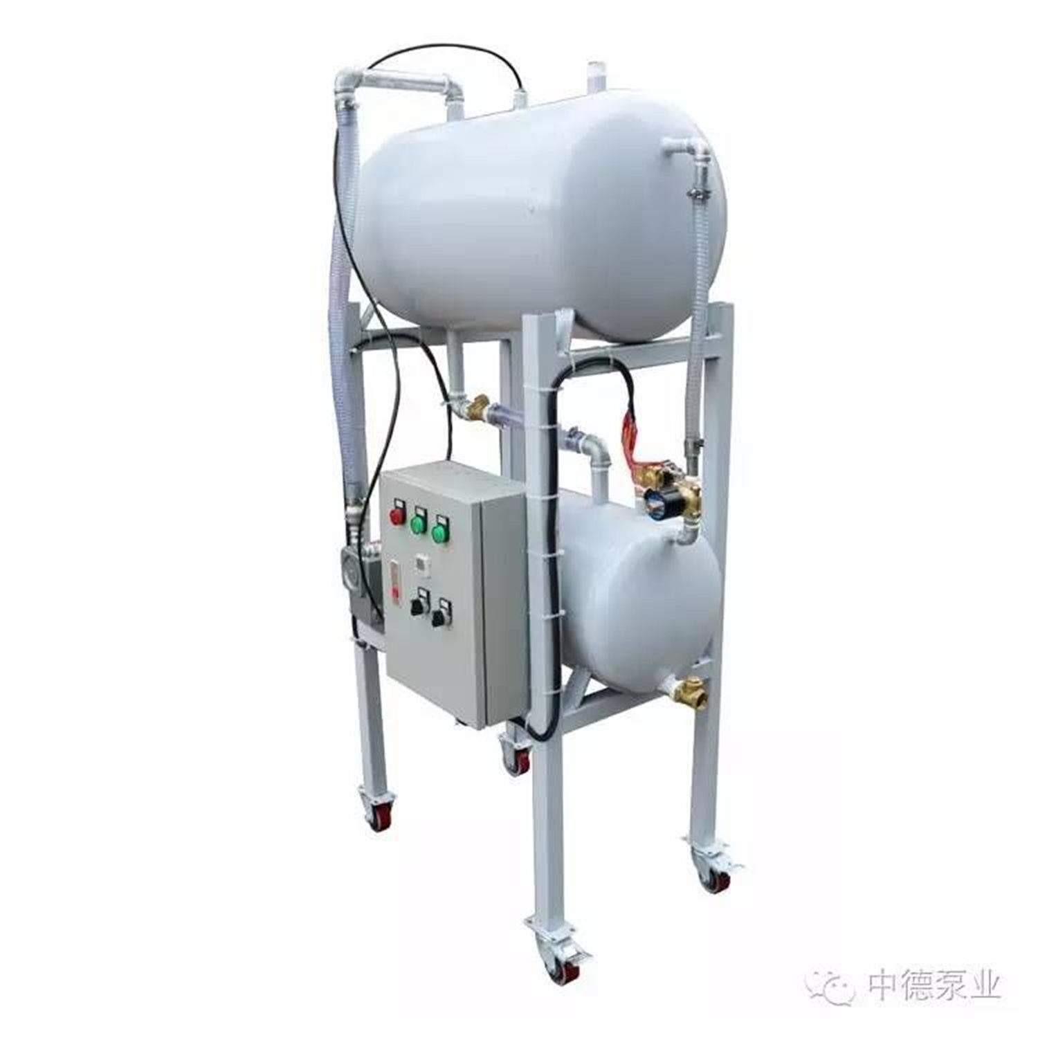 100上下雙罐機(jī)組方式一般是根據(jù)客戶使用方法,真空緩沖的安裝方式來劃分,一般負(fù)壓站的真空緩沖罐超過0.6立方安裝在固定的設(shè)備房內(nèi),不經(jīng)常移動則做成固定式負(fù)壓站緩沖罐小于0.6立方臥式安裝負(fù)壓站需要多工位作業(yè),則做成移動式負(fù)壓站。